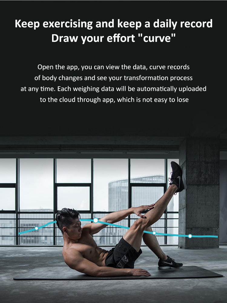 Functions: high precision sensor, intelligent chip control, Bluetooth connection app, multiple body data, support multi person data recording